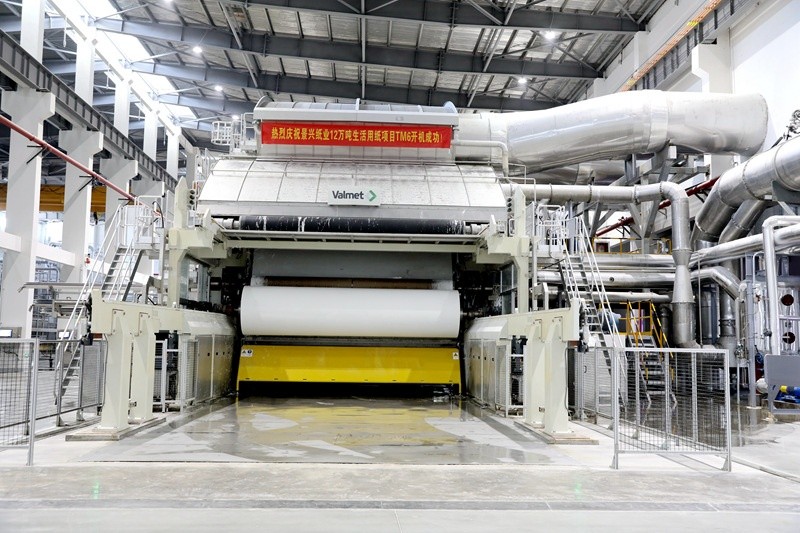 景興紙業于2020年開始規劃建設兩條年產6萬噸的生活用紙生產線。TM5紙機已于1月20日開機出紙。